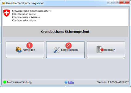 5.1 Starten des Grundbuch-Sicherungsclients und Anmeldung