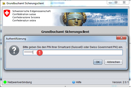Starten Sie anschliessend den eGRIS-Client. Nun werden Sie nach der PIN Ihres Zertifikats gefragt.