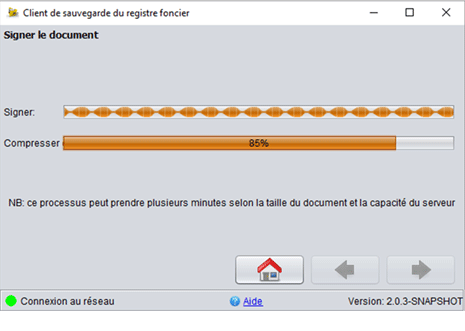 L’application signe et compresse les données : n’interrompez pas le processus.