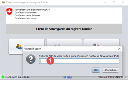 Important : votre carte à puce doit rester insérée pendant que vous utilisez le client de sauvegarde du registre foncier.